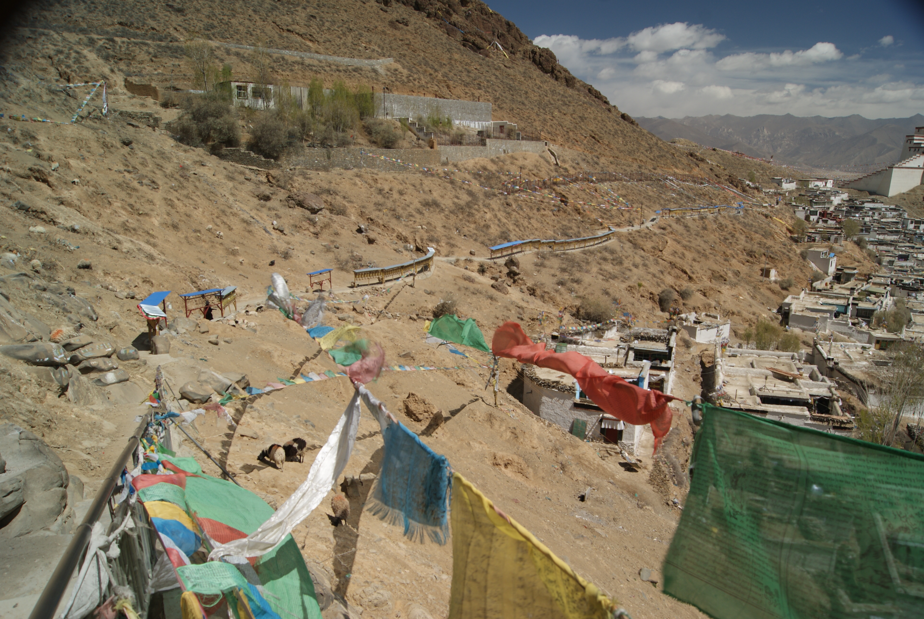 Wir liefen in Shigatse vom Hotel zum Tasilhumpo Monastery und ich hatte kein GPS und keinen Fotoapparat dabei. Was dann passierte war ein wunderschönes Erlebnis daß ich nur im Kopf habe und nur hier beschreiben kann: Das Tasilhunpo Kloster liegt am Fuße eines Berges und geht ca. 100HM den Berg hinauf. Das Kloster is der Sitz des Panchem Lama, dem zweithöchsten religiösen Würdenträger in Tibet. Dieses Kloster hat auch eine Chora. Eine Chora ist ein Weg um das Kloster herum und die Pilger quasi “wallfahrten” gehen und wird von den Pilgern so oft wie möglich im Leben gegangen. Es gibt kurze Choras mit 30min oder 1h Gehzeit. Oder die Kailash Umrundung in 3 Tagen.