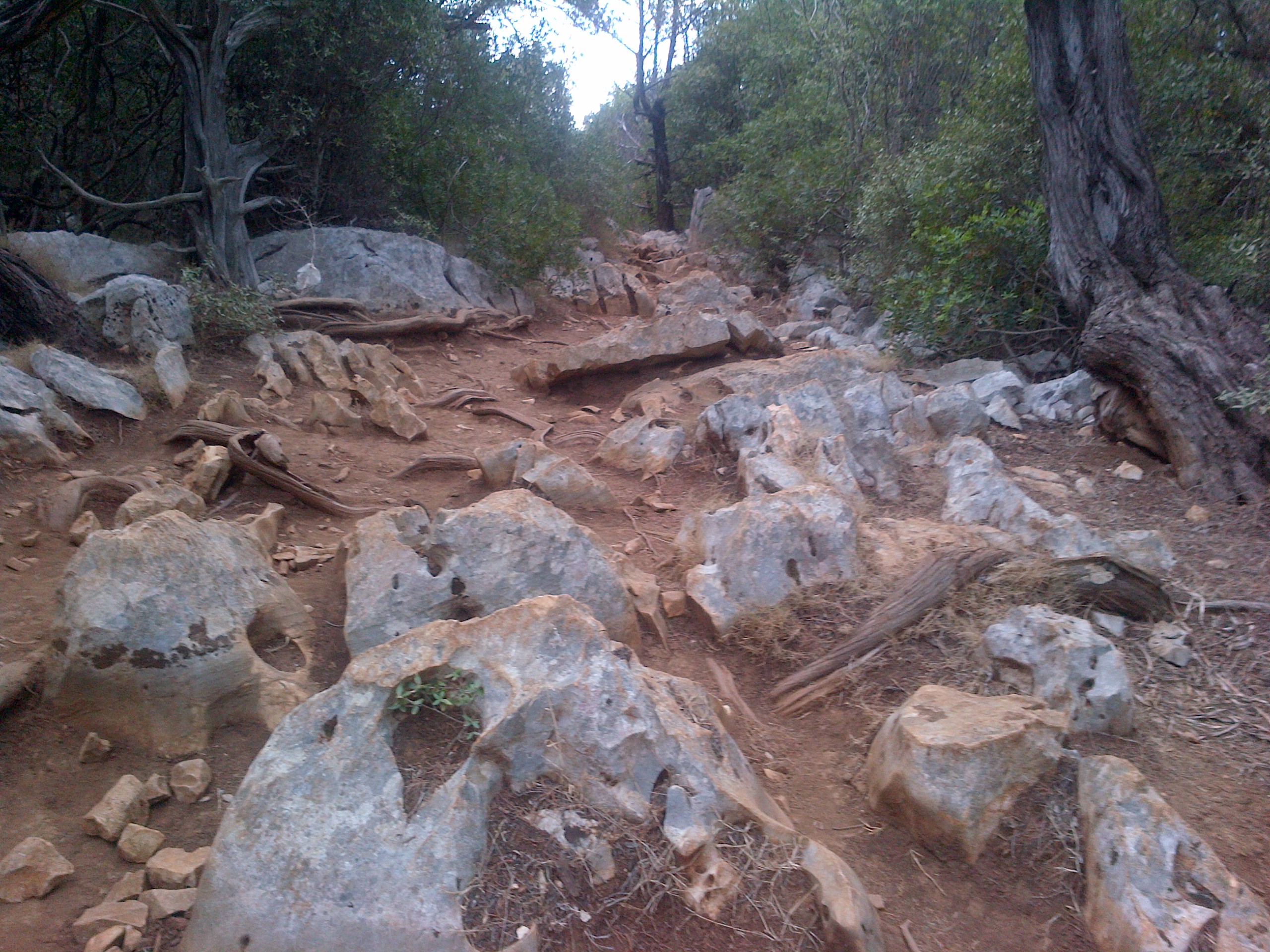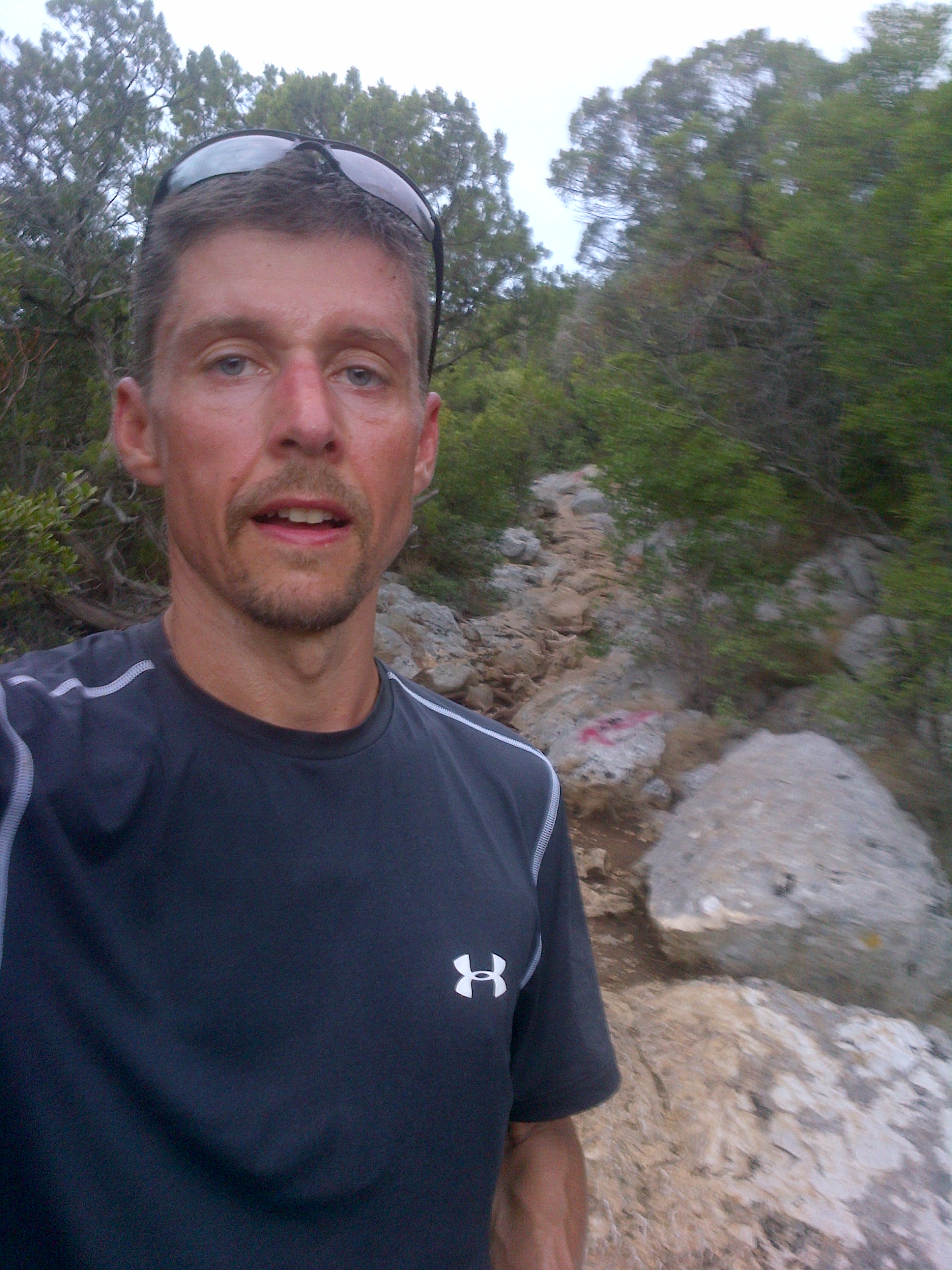Und es kommt der wildeste und technisch schwierigste Trail den ich je hatte! Auf Felsen hin und hergehopst geht es 10km lang zur Cala Golone. Auf und Ab und nochmal einige Höhenmeter gemacht. Das war kein Weg mehr!