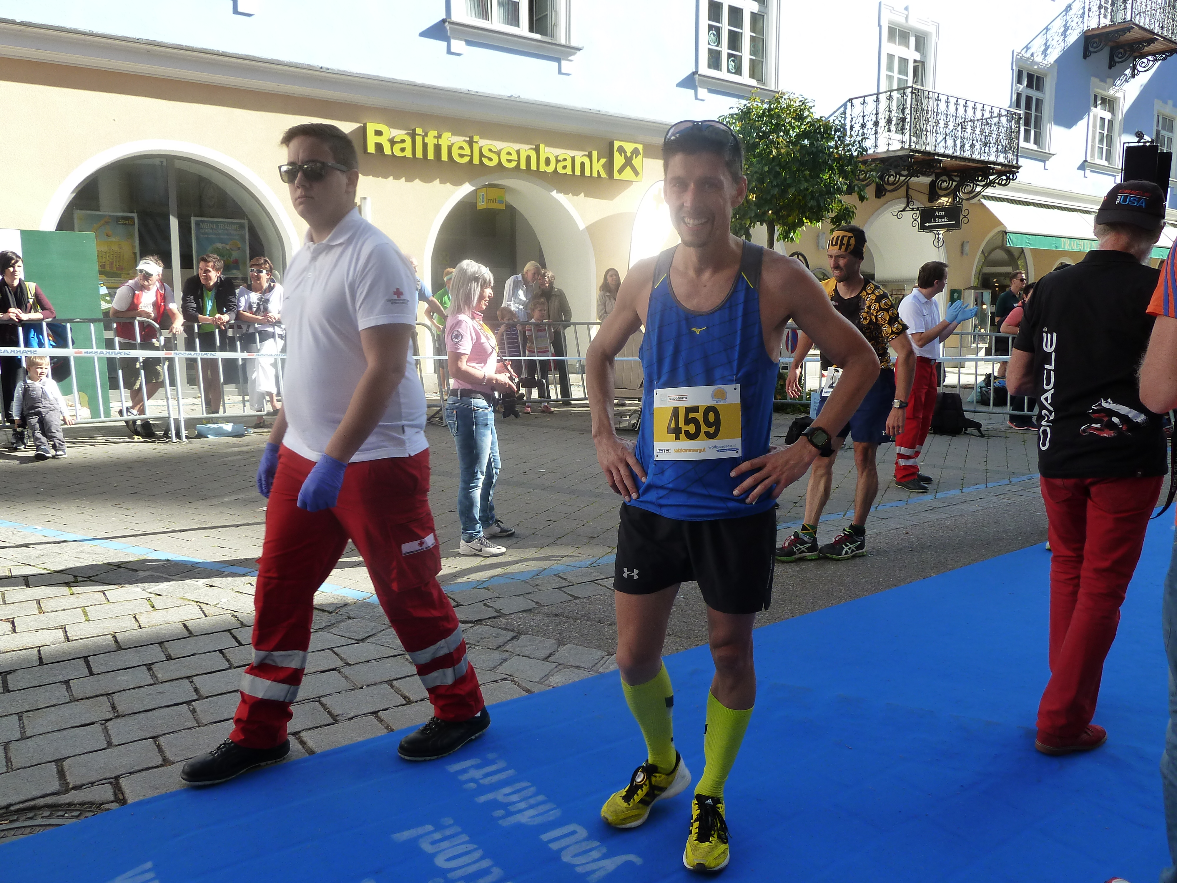 Ich ging natürlich auch viel zu schnell an den Berg. Neben mir redete beim hinauflaufen ein Wipptaler die ganze Zeit. Bei mir war nicht mehr als ein schnaufendes “Ja, genau” drinnen. Runter ging es dann mit <3:00min/km. Und dann ist man wieder am Seeufer und glaubt man steht.