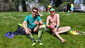 Ein herrlicher italienischer Morgen erwartete uns! Sonnenschein, ca. 15° Temperatur und ein Park voll von Laufverrückten Italienern die beim Aufwärmen waren. Ein Hauch von Sixtus Gel liegt über den Park .