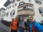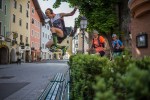 Nach 1,5 Tagen durch die stillen Berge der Kitzbühler Alpen auf Wanderwegen ohne Lifte waren wir jetzt mitten im Kitzbühler Skigebiet. Beim zweiten Anstieg ging es zum Pengelstein hinauf. Die Wolken wurden immer mehr. Genau als wir die Bergstation erreichen, fing es an zu regnen und zu graupeln. Wir nutzen die Zwangspause und stärkten uns erstmal. Wir warteten bis der starke Regen wieder weiterzog. Über die Kitzbühler Streif geht es hinunter nach Kitzbühel. Bei der Seidlalm machten wir einen Rechtsschwung in den Wald und tauchten wieder in geniale Singletrails ein. Wir hatten schon gut 30km in den Beinen, aber wir gaben mächtig Gas auf diesem Downhill (https://youtu.be/ChMEYtdiJ_o) In Kitzbühel erwartete uns schon das Hotel Eggerwirt. Nachdem wir uns wieder kultiviert hatten ging es auf ein verdientes Weißbier in die Kitzbühler Innenstadt. Auch hier gab es ein 3 Tages Event: Bei der Kitzbühler Alpenrallye schnauften Oldtimer Autos gleich den Berg hinauf wie wir.
