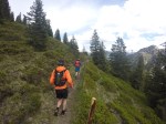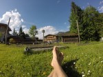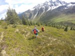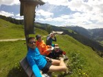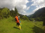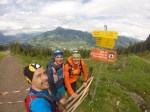 Am 2. Tag starteten wir recht früh, da am Nachmittag Gewitter angesagt waren. Es ging zuerst hinauf zur Hintenkarscharte. Gleichmäßig ging es Kehre um Kehre bergauf, genau richtig um wieder munter zu werden. Hinunter zur Laabalm in der Aschau experimentierten wir mit unseren GoPros und probierten damit unsere Downhills einzufangen. Wir spielten mit dem Gelände und den Trails (https://youtu.be/yTZ9cuyz8hs)Für mich war dieser Trail einer der schönsten, er war breit und voll mit Gras bewachsen. Hin und wieder gab es natürliche Hindernisse wie kleinere Felsen oder versteckte Matsch-Lacken. Es ging durch Wälder und Wiesen in die Aschau hinunter.