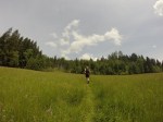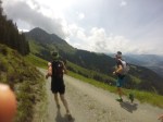 In St. Johann ist es gefährlich. Man glaubt der KAT Walk ist ja eigentlich schon zu Ende. Man freut sich, gönnt sich ein großes Eis, kehrt vielleicht ein und ist stolz den KAT Walk ja eigentlich geschafft zu haben. Aber dann kommt der Blick auf die GPS Uhr: Was? Erst 15km heute gelaufen? 25km kommen noch???? Und diese 25km ziehen sich. Der Weg hinauf auf den Kalkstein ist wunderschön, sagten die anderen. Bei mir ging es ab jetzt ums blanke Überleben. Diese letzten 800HM zogen sich durch Wiesen und Wälder. Er war nicht sonderlich steil, eher sanft geschwungen. Am Gipfel setzen wir uns ins Gras und schauten zurück aufs Kitzbühler Horn, Pengelstein und dahinter die Aschau und die Windau. Die Mittagssonne schien herunter und wir sammelten unsere letzten Kräfte. Es ging von Alm zu Alm über weitläufige Wege. Am Schluß kam noch das Highlight von Markus: Durch einen roten Nadelwald kurvte der trail auf butterweichem Waldböden Richtung Tal. Die letzten Kilometer bis zum Bahnhof Fieberbrunn waren wie die letzten Kilometer bei einem Rennen. Man ist leer, hat keine Kraft, nur die Endorphine und Glückshormone dass man es bald geschafft hat lassen mich einen Schritt vor den anderen setzen.